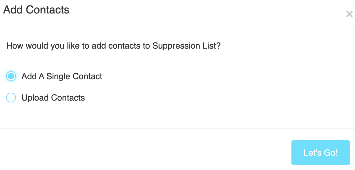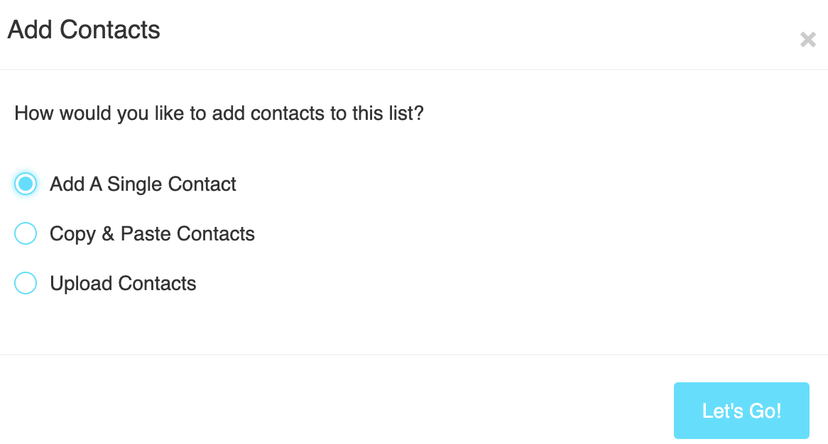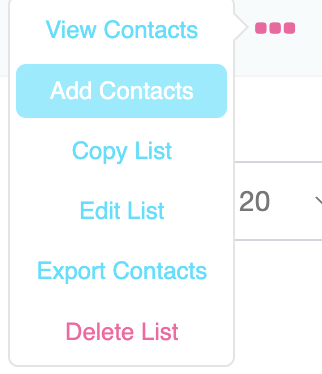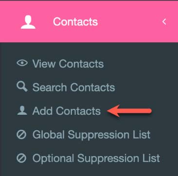 1. To upload your list, click on Contacts, then Add Contacts.