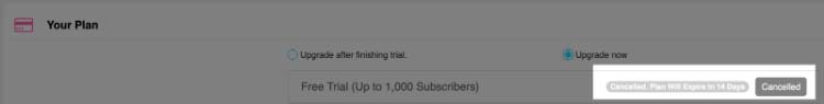 5. Once your plan is canceled you will see this confirmation text.