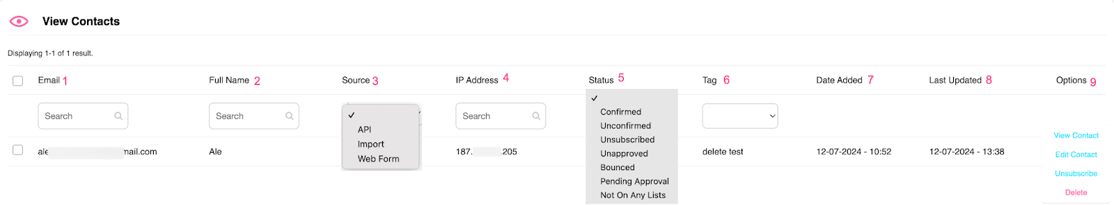 1. Click on Contacts, then View Contacts.