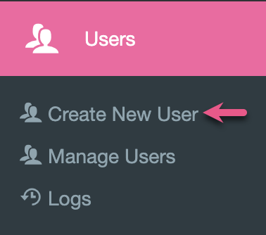 1. From the main menu, click on Users, then Create New User.