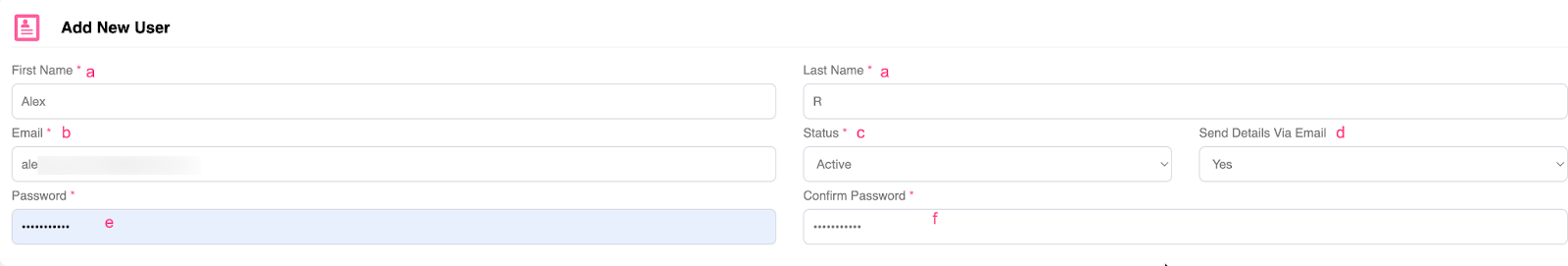 2. Fill in the needed information about the new user.