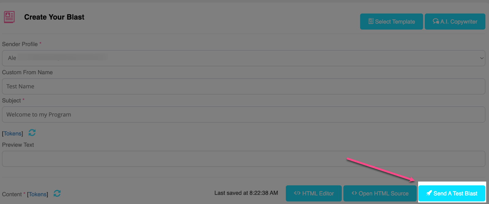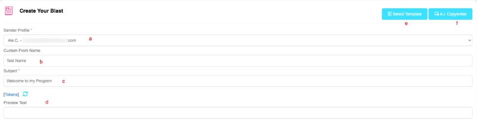 3. When creating your Email blast, you can select the Sender of your choice from the drop-down menu.