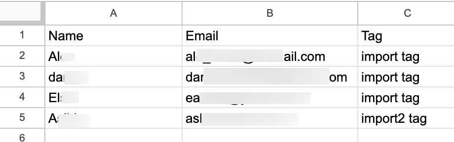 You can import lists with previously added tags into Blastable. To do this, you need an existing list in CSV format.