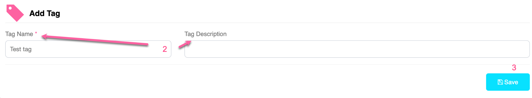 3. A new menu will appear at the top of the page, select “Add Tag”.
