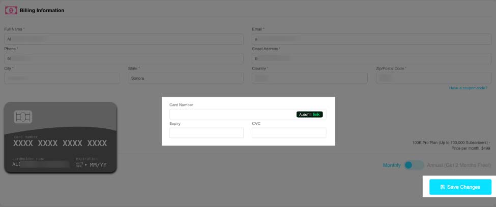 3. Update your card information as you please and then click on Save the Changes.