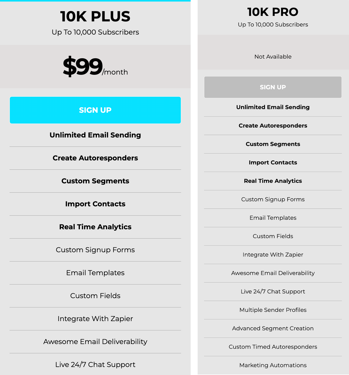 - Up to 10,000 subscribers