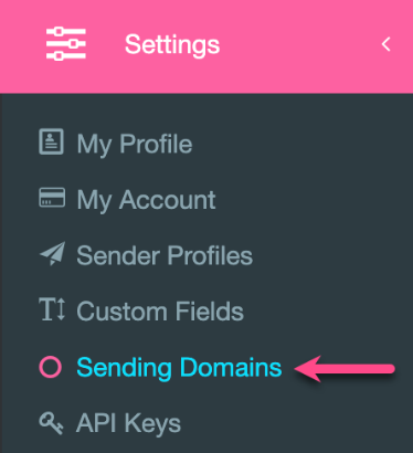 1. Go to Settings, then Sending Domains.