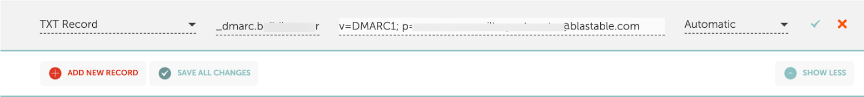 9. Create a third TXT record for the DMARC using the values generated in Blastable.