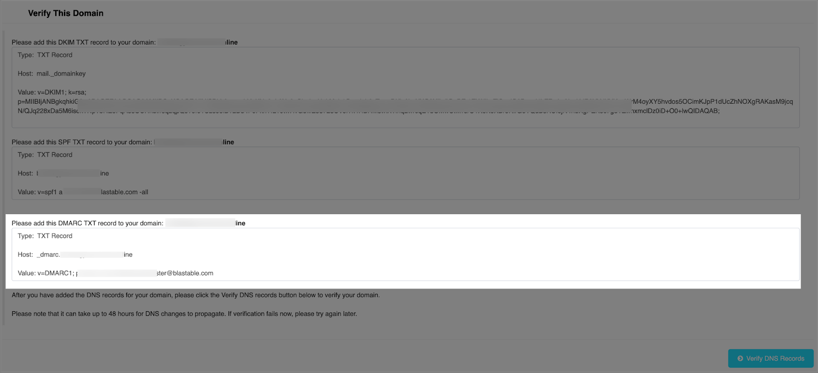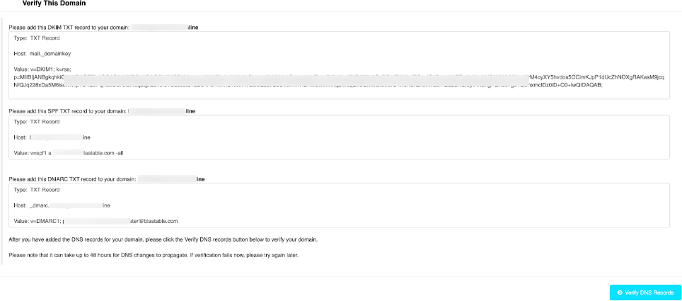 | How to Set Up SPF, DKIM, and DMARC Records in Blastable |