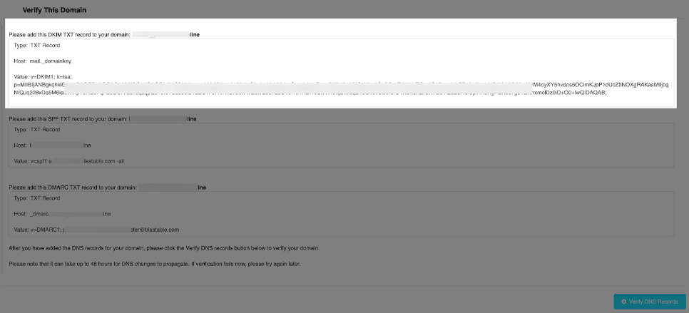 Now we have more information about these three records and the importance of setting them up for your domain, let’s review the steps to generate them in your Blastable account.