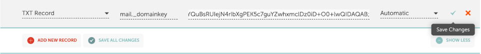 4. Leave the word “mail” as the DKIM Selector and Save Changes to generate the records.
